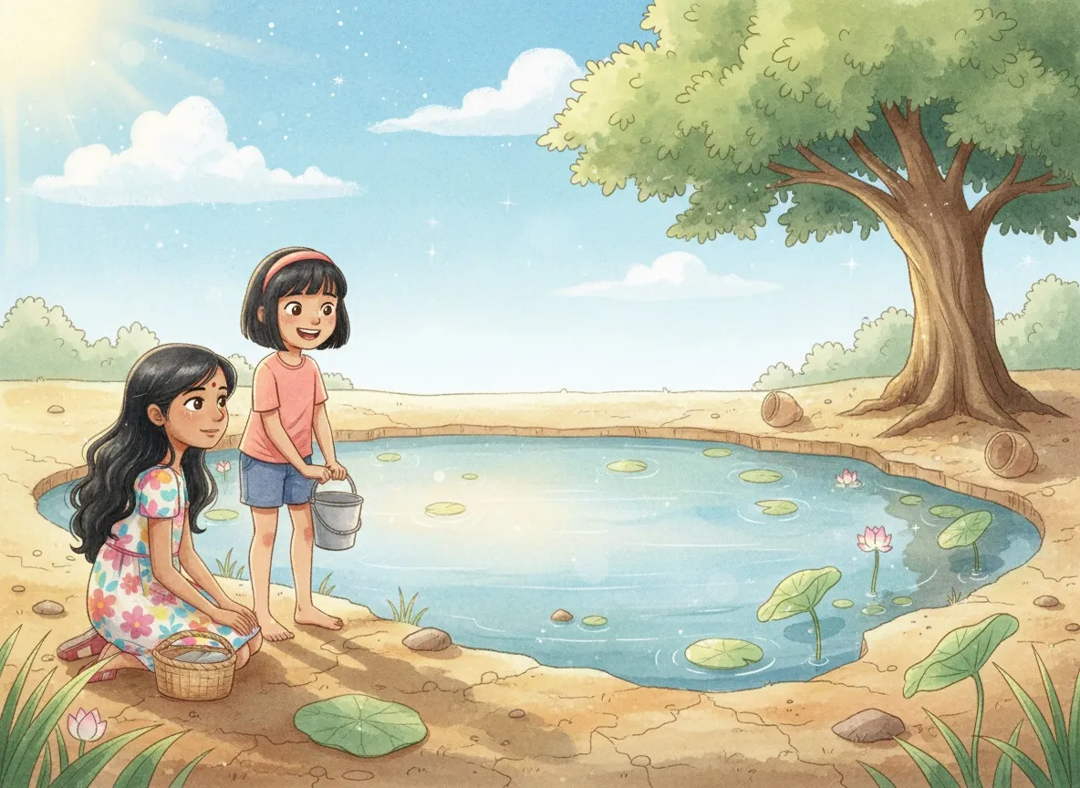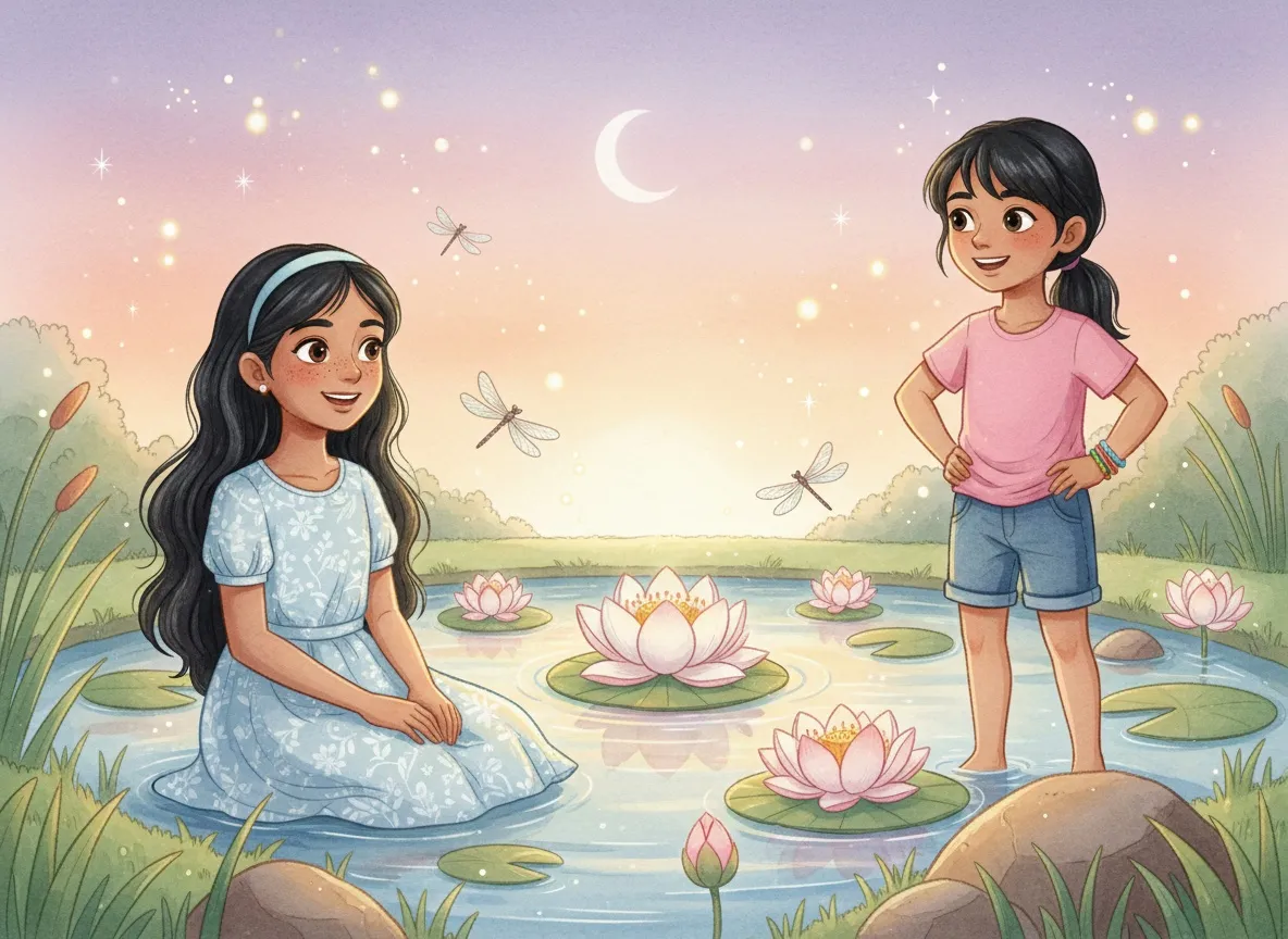 Anaya, ein neugieriges Mädchen, liebte es, jeden Morgen zum Teich in ihrer Nachbarschaft zu gehen. Sie trug ein hellblaues Kleid und hatte Zöpfe, die beim Gehen hüpften. Der Teich war ein ruhiger Ort voller Leben. Große grüne Lotusblätter schwammen auf dem Wasser. Kleine Fische huschten unter den Blättern hindurch. Libellen tanzten in der Luft mit ihren glitzernden Flügeln. Anaya setzte sich oft auf einen kühlen Stein und beobachtete die Welt des Teiches. Eines sonnigen Morgens, als Anaya eine wunderschöne rosa Lotusblume bewunderte, die sich gerade öffnete, passierte etwas Magisches. Die Lotusblume begann sanft zu sprechen. "Guten Morgen, kleine Freundin", sagte die Lotusblume mit einer tiefen, beruhigenden Stimme. Anaya blinzelte überrascht. Hatte sie das wirklich gehört? Sie sah sich um, aber niemand war da. Nur sie und der Teich. Die Lotusblume sprach wieder. "Ja, du hast richtig gehört. Ich bin Kamal, der Lotus des Teiches." Anaya war zuerst etwas ängstlich, aber Kamals Stimme war so freundlich. "Hallo, Kamal", flüsterte Anaya. "Ich bin Anaya. Kannst du wirklich sprechen?" Kamal lachte leise, ein Geräusch wie das sanfte Rascheln von Blättern im Wind. "Ja, ich kann. Und ich habe dir etwas Wichtiges zu erzählen." Kamal erklärte Anaya, wie wichtig Geduld ist. Er sagte, dass jede Blume Zeit braucht, um zu wachsen. Jeder Fisch braucht Zeit, um größer zu werden. "Alles im Leben braucht seine Zeit, Anaya", sagte Kamal. "Wenn du geduldig bist, wirst du sehen, wie viele schöne Dinge sich entwickeln." Anaya hörte aufmerksam zu. Sie lernte, dass der Teich ein Zuhause für viele Lebewesen war. "Der Teich ist wie ein großes Haus", erklärte Kamal. "Wir alle leben hier zusammen. Wir müssen uns gut darum kümmern." Anaya nickte eifrig. Der Teich wurde für sie noch besonderer. Sie versprach Kamal, dass sie immer vorsichtig sein würde. Sie würde keine Steine ins Wasser werfen. Sie würde die Blumen nicht pflücken. Sie würde sich um den Teich kümmern, so gut sie konnte. Sie fühlte sich geehrt, ein solches Geheimnis mit Kamal zu teilen. Der Teich war nicht mehr nur ein Ort zum Beobachten. Es war ein Ort zum Lernen. Es war ein Ort voller Magie. Anaya verbrachte den ganzen Morgen damit, Kamal zuzuhören. Sie sprach über Libellen und Frösche. Sie sprach über den Sonnenschein und den Regen. Kamal war sehr weise. Er wusste so viel über den Teich. Er sprach von der Sonne, die das Wasser wärmt. Er sprach vom Regen, der das Wasser füllt. Er sprach vom Schlamm am Boden, der Nährstoffe für die Pflanzen liefert. Anaya war fasziniert von jedem Wort. Sie wollte alles lernen, was Kamal ihr beibringen konnte. Sie verstand, dass alles in der Natur miteinander verbunden war. Kamal erklärte ihr auch, dass der Teich ein Gleichgewicht hatte. Jede Pflanze, jedes Tier spielte eine Rolle. Wenn ein Teil fehlte, konnte das Gleichgewicht gestört werden. Anaya wusste nun, dass sie eine besondere Aufgabe hatte. Sie musste auf dieses Gleichgewicht achten. Sie musste dem Teich helfen, gesund zu bleiben. Sie fühlte sich wie eine kleine Wächterin. Sie fühlte sich wichtig. Die Sonne stieg höher am Himmel. Anaya wusste, dass sie bald nach Hause gehen musste. Sie verabschiedete sich von Kamal. "Ich komme morgen wieder", versprach sie. Kamal lächelte. "Ich werde hier sein, kleine Freundin." Anaya ging nach Hause, ihr Herz war voller neuer Kenntnisse. Der Teich war nun ihr Geheimnis. Ein ganz besonderes Geheimnis. Ein Geheimnis, das Geduld und Fürsorge lehrte. Sie spürte eine tiefe Verbindung zu Kamal und dem Teich. Sie war froh, dass sie diese wundervolle Lotusblume kennengelernt hatte. Sie schlief an diesem Abend mit einem Lächeln ein, träumend von sprechenden Lotusblumen und einem Teich voller Leben. Sie freute sich auf den nächsten Morgen. Sie konnte es kaum erwarten, Kamal wiederzusehen. Sie fragte sich, welche Geheimnisse der Teich ihr noch offenbaren würde. Anaya wusste, dass das Leben am Teich eine ganz besondere Geschichte war, die darauf wartete, erzählt zu werden. Sie war ein Teil dieser Geschichte. Das machte sie sehr glücklich. Der Teich war nicht nur ein Teich. Es war eine Schule der Natur. Ein Ort des Staunens und Lernens. Ein Ort, an dem Freundschaften blühten. Anaya freute sich auf all die Abenteuer, die noch kommen würden. Sie wusste, dass Geduld der Schlüssel zu allem war.