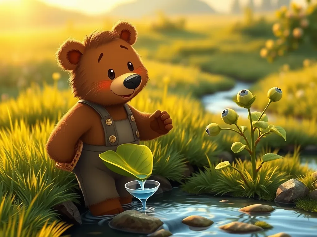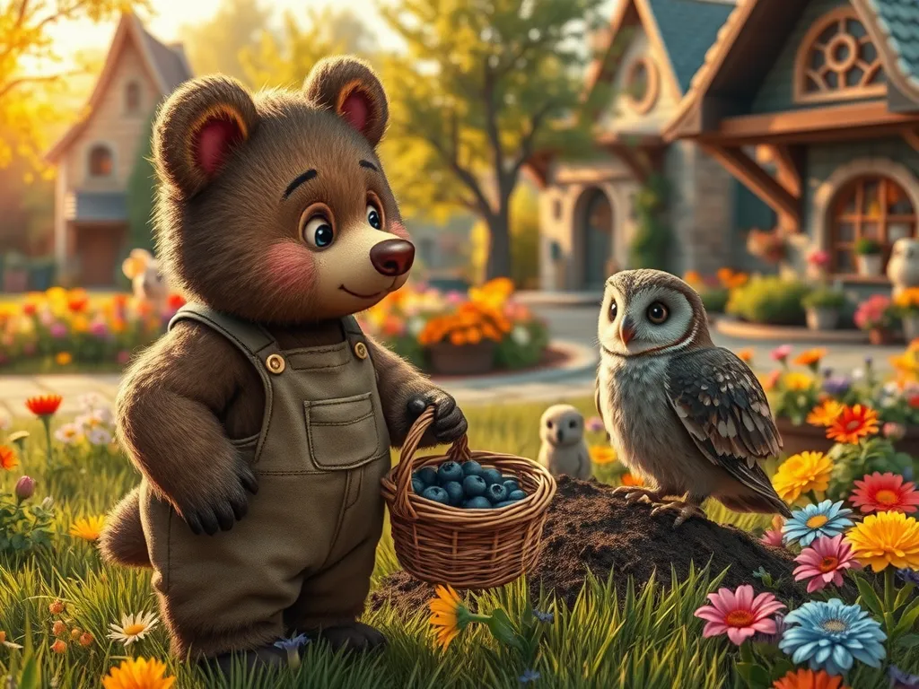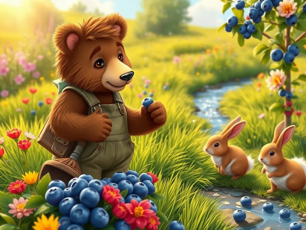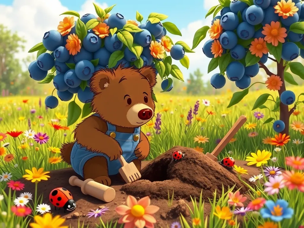 Barnaby Bear, a small bear with scruffy brown fur and a perpetually curious expression, lived near a sprawling blueberry bush. This bush wasn't just any bush; it produced the juiciest, plumpest blueberries Barnaby had ever tasted. He loved tending to it, carefully weeding around its base and protecting it from hungry birds. This year, however, the bush was producing very few blueberries. Barnaby was worried. He spent hours examining the soil, checking for pests, and even talking to the friendly ladybugs that usually lived amongst the leaves, but he couldn't find the problem. He sighed, his little brown nose twitching with concern. He needed a solution, and fast! The annual Blueberry Festival was only a week away, and Barnaby was famous for his blueberry pies.
