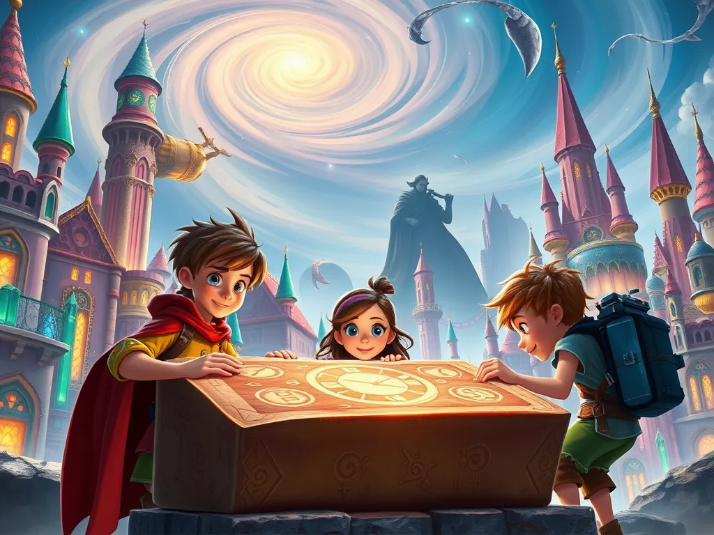 Leo, Mia y Zane se encontraban en su árbol mágico, un lugar donde las ramas susurraban secretos y las hojas cantaban canciones antiguas. Habían descubierto un viejo mapa, arrugado y descolorido, que mostraba una ciudad perdida con torres de oro y relojes que flotaban en el aire. "¡La Ciudad de los Relojes Dorados!" exclamó Mia, sus ojos brillantes de emoción. Zane, siempre el más cauteloso, preguntó: "¿Creéis que el mapa sea real?" Leo, el líder del grupo, respondió: "El árbol nunca nos ha engañado. ¡Vamos!"