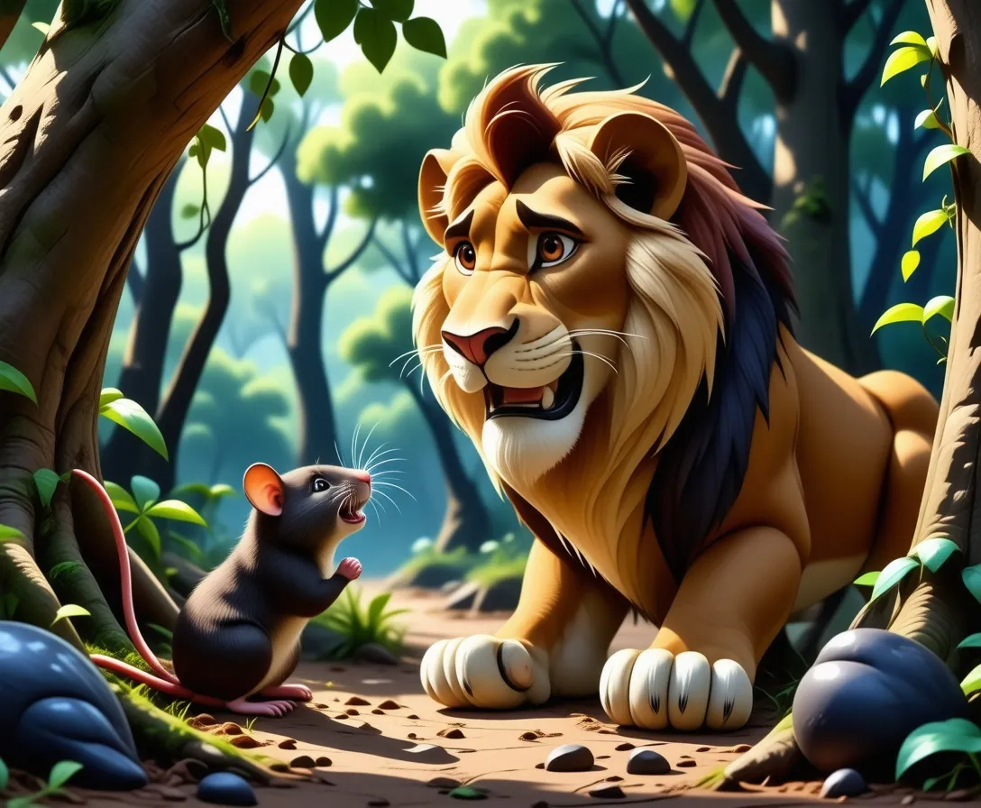 One sunny day, as Leo roamed the forest, he stumbled upon a tiny creature—a little rat named Ruby. Her eyes sparkled with mischief, and her whiskers twitched with curiosity.