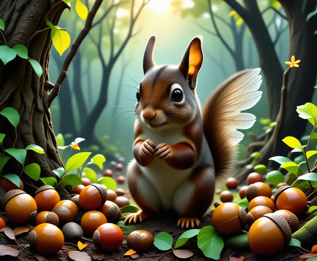 One sunny morning, while scurrying through the forest, Pip stumbled upon a pair of magical acorns. These weren't ordinary acorns - they were enchanted! Pip's heart raced with curiosity as he carefully planted them in the soft ground.