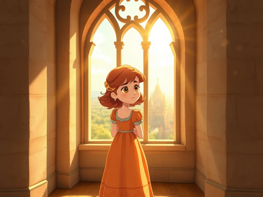 Princess Lily, a small girl with bright, curious eyes and a cascade of auburn curls, sat alone in her grand tower room. Sunlight streamed through the tall, arched windows, illuminating dust motes dancing in the air. She was dressed in a simple linen gown the color of ripe peaches, her only adornment a single silver bracelet her grandmother had given her. Lily’s heart felt heavy. Her toys lay scattered, untouched. She sighed, a puff of air barely disturbing the stillness. For weeks, a strange silence had fallen over the kingdom of Whisperwind. The birds sang less, the wind whispered secrets only it seemed to understand, and worst of all, the usually vibrant flowers in the royal gardens drooped with listlessness. Lily, brave and kind despite her youth, felt the weight of this unusual quiet. She gazed out the window, her small hand resting on the cool stone. She wanted to help, to bring song and life back to her kingdom. She knew she had to do something, but what? She decided to confide in Old Man Willow. She knew he held ancient secrets and might have some answers.