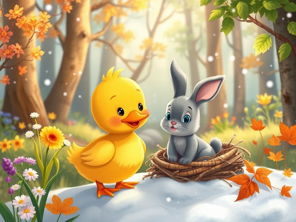 One day, Freddie felt sad. Winter was making him cold. Quacky shared his warm nest, and they cuddled together until spring arrived again.