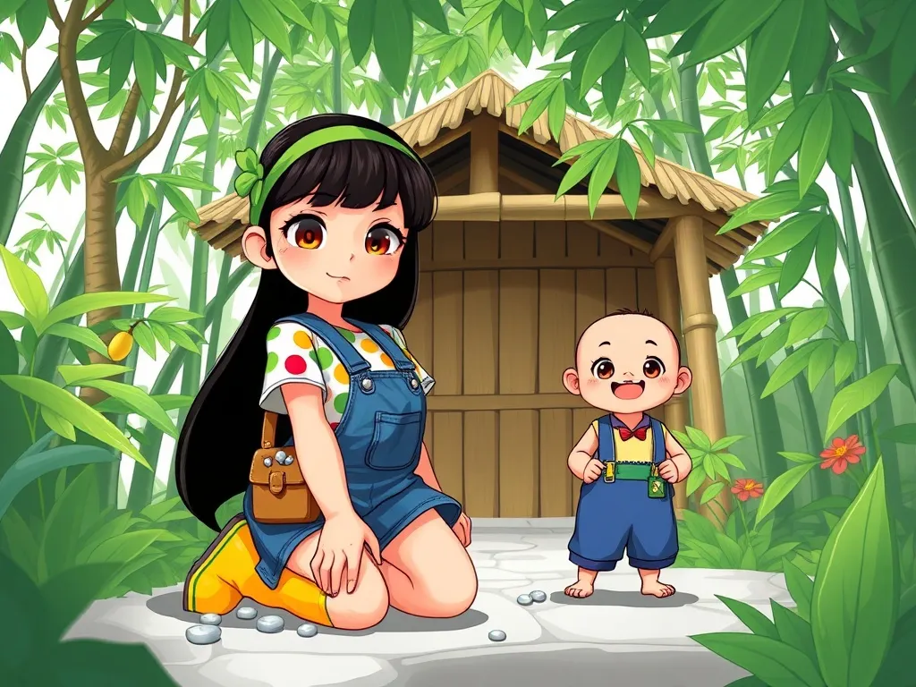 The Magic Garden, usually bursting with vibrant colors and delicious smells, felt strangely dull. Noble Panda, the garden's caretaker, paced back and forth, his usually jovial face etched with worry. The sparkle, the very essence that made the fruits taste extraordinary and the flowers shimmer with magic, was gone! Wasabi the Swift, a nimble monkey known for his speed and bravery, swung down from a mango tree. "Noble Panda, what troubles you?" he chirped, his bright eyes full of concern. Noble Panda sighed, explaining the disappearance of the sparkle and the blandness that had befallen the Magic Garden. Kimchi the Graceful, a wise and gentle crane who lived by the Crystal Lake near the Magic Garden, gracefully landed beside them. She had heard their worried voices from afar. "The absence of the sparkle is a grave matter," she crooned, her voice like gentle chimes. "It is said that the Sparkling Spices, the source of the garden's magic, have been stolen by the Gloom Goblins of the Shadow Mountains." Wasabi puffed out his chest. "Then we must retrieve them!" he declared, his tail twitching with excitement. Kimchi nodded solemnly. "The journey will be perilous, but if anyone can succeed, it is you, Wasabi. I will go with you, my wisdom and knowledge of the lands can come in handy."